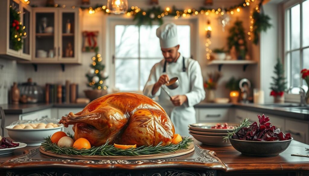 Die Zubereitung eines perfekten Gänsebratens zu Weihnachten ist eine Kunst, die mit Liebe, Geduld und den richtigen Kniffen gelingt. Die Gans wird dabei zunächst vorbereitet, mit einer schmackhaften Füllung versehen und anschließend im Ofen goldbraun gebraten, wobei regelmäßiges Begießen mit dem eigenen Fett für eine knusprige Haut und saftiges Fleisch sorgt. Mit den passenden Beilagen wird der Gänsebraten zum unvergesslichen Festtagsmahl.